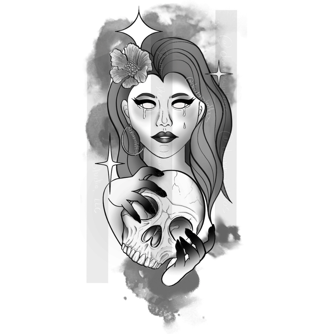 Hey there! I’m Dee, and I opened “Little Bird Tattoo Studio” on July 1st, 2023. I started my tattoo apprenticeship back in 2020 after going to art school at Northern Illinois University, and very quickly found myself drawn to black and gray illustrative tattoo projects.